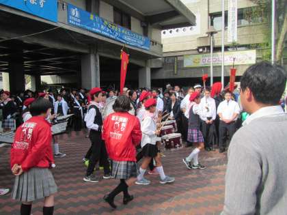 区役所前の公道を演奏しながら行進します。