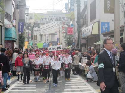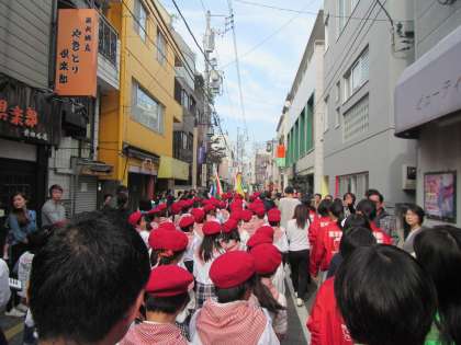 多くの人でにぎわう松陰神社商店街をパレードが進みます。