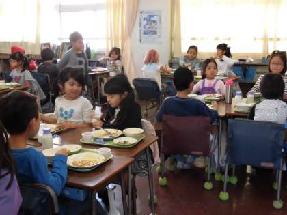 給食時間もしっかりとお勉強できているようです。