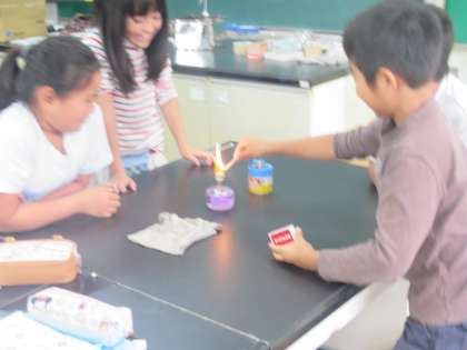 マッチを初めてする子もいて、緊張感漂う45分間でしたが全員が無事にアルコールランプを使えるようになりました。