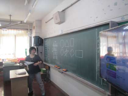 5年生は外国語活動の時間に英語で形や色についての表現方法を学習しています。