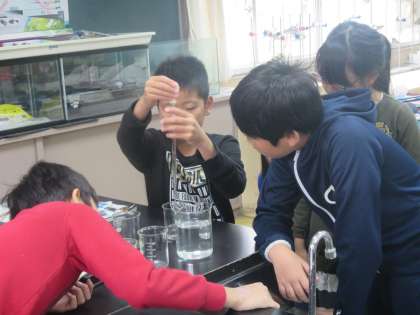 今日は水を正確に測って、どれくらい減るのかを確かめました。