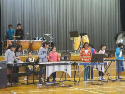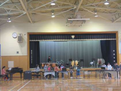 6年生が体育館で合奏の練習をしていました。