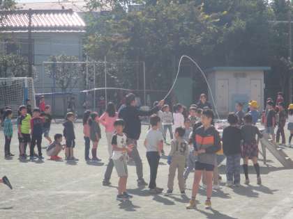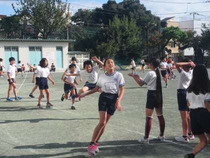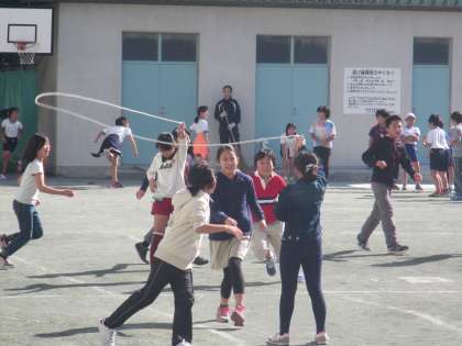長なわ記録会に向けて、休み時間に子どもたちが練習をしています。