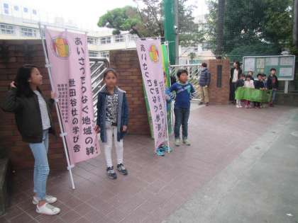 今日も1班の子たちが元気なあいさつを響かせていました。