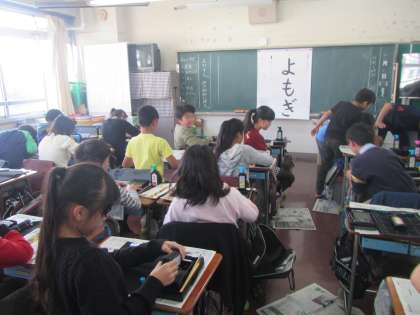 5年生は習字で「よもぎ」という文字にチャレンジしています。
