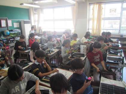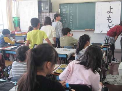 ひらがなは曲がり角ばかりでとても難しく、5年生たちも苦戦しているようでした。