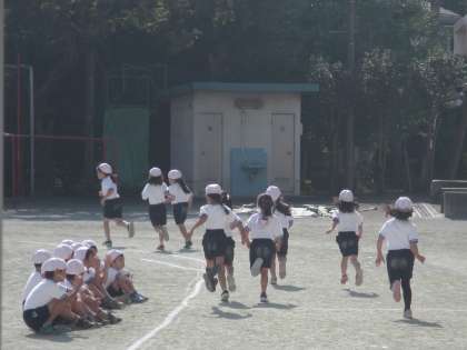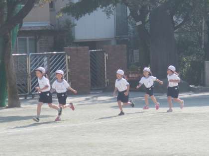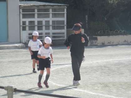 暖かい日差しをいっぱいに浴びて快走する1年生たち。