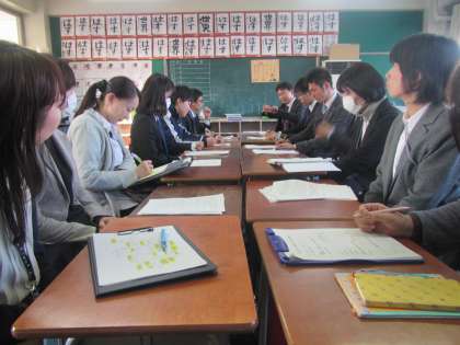 各学級で5時間目の授業を見ていただいた後、杜の学び舎の先生方が全員集まって会議を行いました。