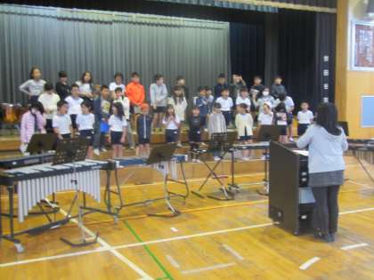 緊張感の漂う体育館に、元気な歌声が響きます。
