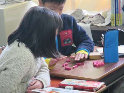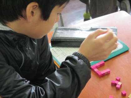 そんなことを考えながら、ブロックを使って広さを表し、比べてみました。