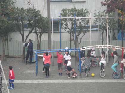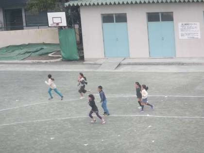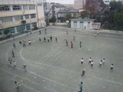 休み時間の校庭では、たくさんの子たちが遊んでいました。