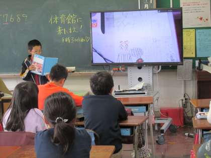 4年生が国語の学習の中で作った「お気に入りの場所スピーチ」をしています。