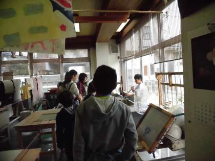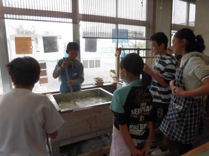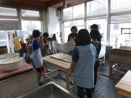 4年生の時の紙すき体験に続き、今年は卒業証書を漉きます。