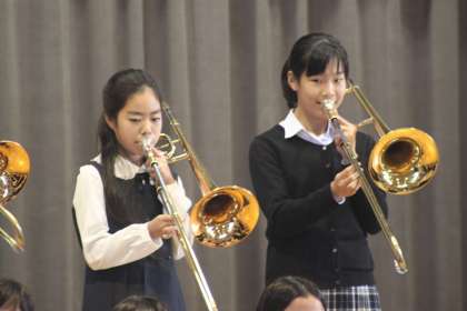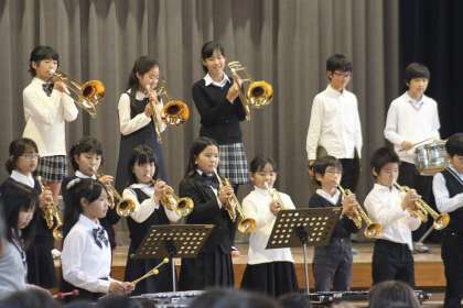 「こんにちは、トランペット」と「黄色いリボン」の2曲のマーチを演奏し、音楽会を華やかに彩ってくれました。
