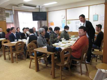 お父さんたちの食べっぷりを校長先生も満足げに見ていました。