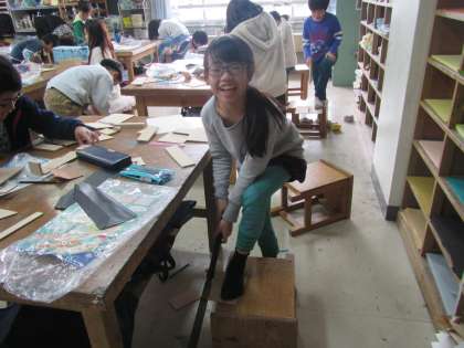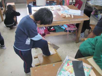 足で板を抑えて、みんなで頑張る様子が見られました。