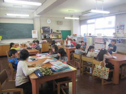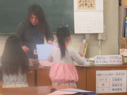 1年生が図書の時間を過ごしています。