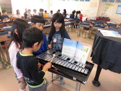 1年生は音楽の時間に初めて鉄琴を使いました。
