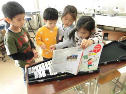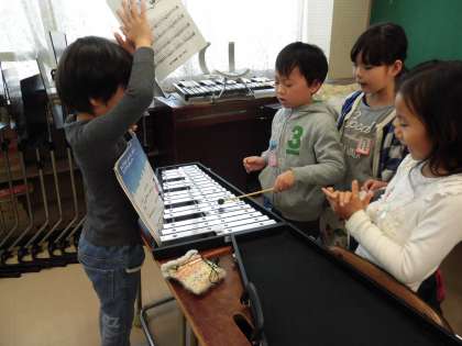 みんなで教えあって、上手にキラキラ星の曲を演奏することができました。