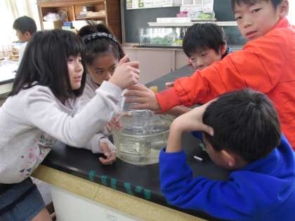 4年生は理科で温度によるかさの変化についての学習をしています。