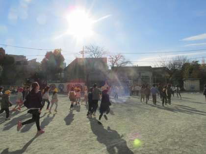 元気いっぱいに走る若小の子たち。