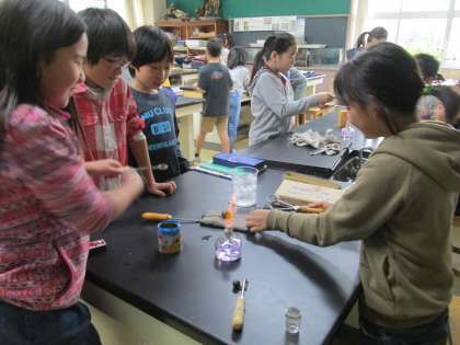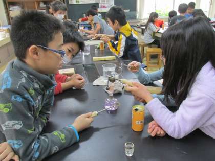 4年生は理科でものを温めると体積に変化はあるのかを学習しています。
