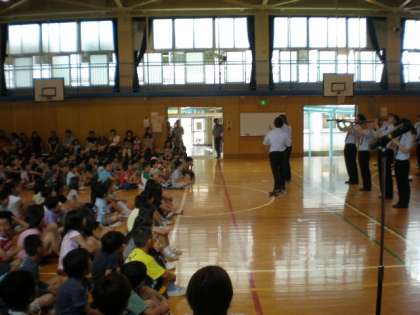 6月25日、駒沢大学マーチングバンドを招いて音楽鑑賞教室を行いました。