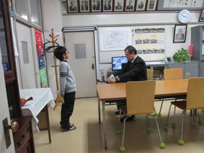 休み時間ごとに5年生が校長室にやってきて、緊張しながら受験していきます。