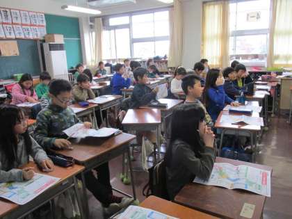 地図帳を開いて都道府県について、2か月にわたっての学習です。