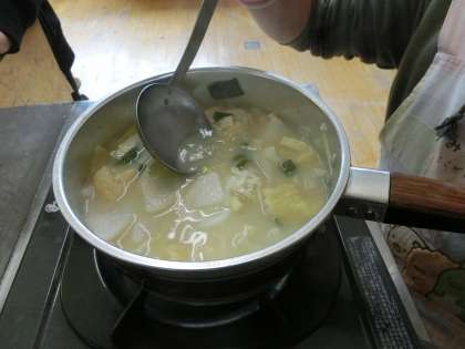煮干しから出てくるだしの香りに、思わず「おいしそう〜!」という声が上がってきました。
