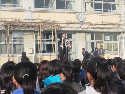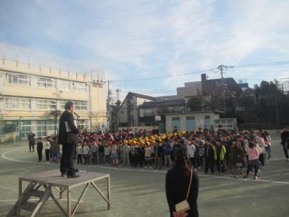冬らしい朝になりましたが、全校朝会では子どもたちがきちんと整列をし、校長先生のお話に耳を傾けていました。