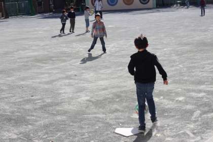 暖かい日差しに包まれた若小の校庭に、もうすぐ子どもたちが戻ってきます。