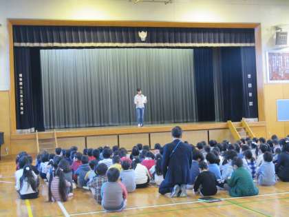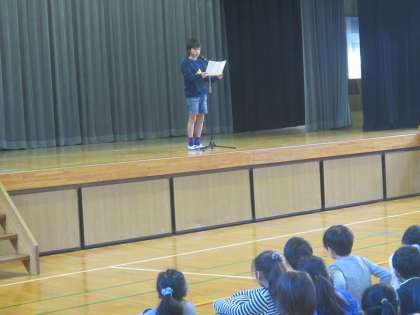 始業式の中で、全校児童を代表して3年生と6年生が代表の言葉を発表しました。