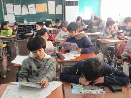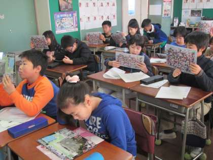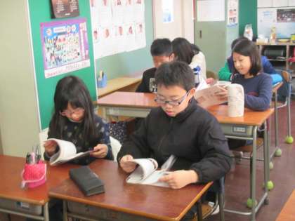 4年生が東京オリンピックに向けたノートを読んでいます。