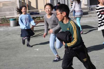 おにごっこもドッジボールも、いつも男女一緒です。