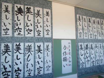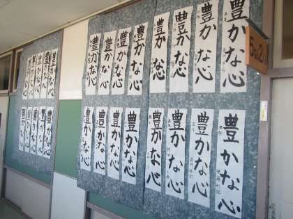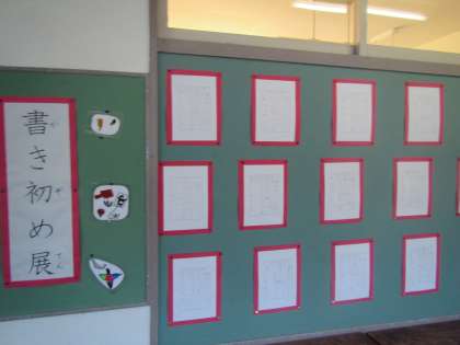 今日から2週間、各教室の廊下に書き初め作品を展示する校内書き初め展が始まりました。