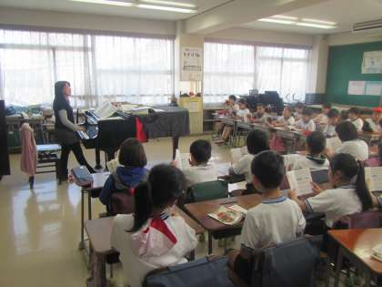 音楽会で上級生が歌ったこの曲を、元気いっぱいの歌声で再現しました。
