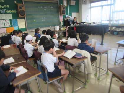 2年生が音楽の時間に「君をのせて」を合唱しました。