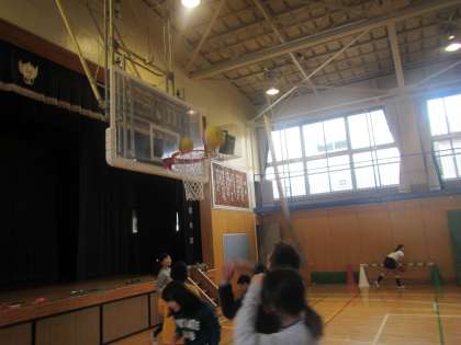 4年生は体育でバスケットボール型ゲームに挑戦します。