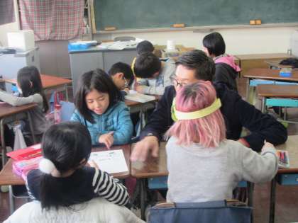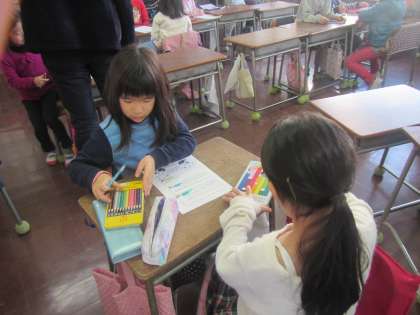 2年生が学級活動の時間に、3学期の係活動ポスターを作っています。