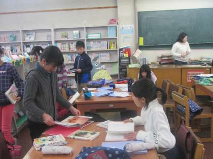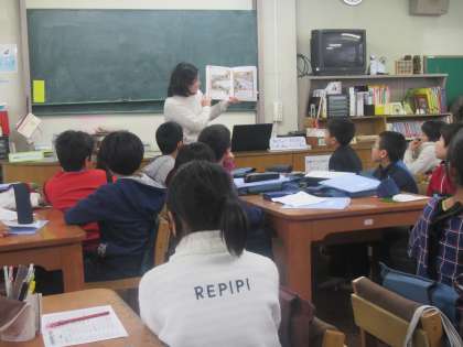 図書の時間に学校司書さんから読み聞かせをしてもらいました。