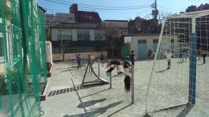 なわとびが一番人気ですが、他にもドッジボールや手打ち野球で盛り上がります。