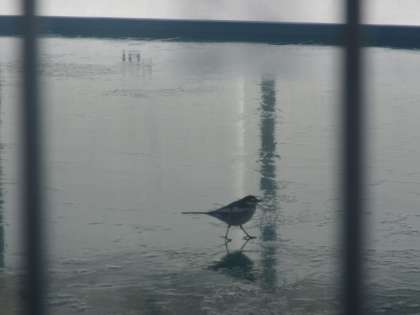 完全に凍結したプールでは、ジジュウカラが氷の上を歩いていました。