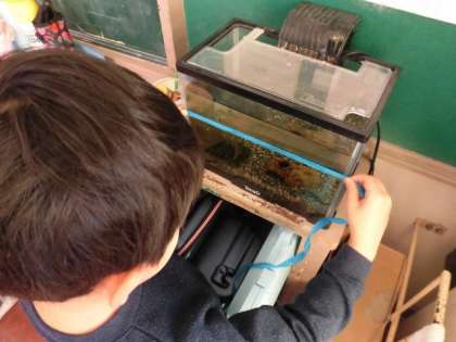 今日は、教室の中で、長さ調べです。