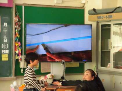 調べた長さは、テレビに映して発表です!