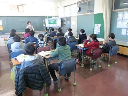 大きな画面を使いながら、英語の歌を歌うなど、活動的に学習しました。