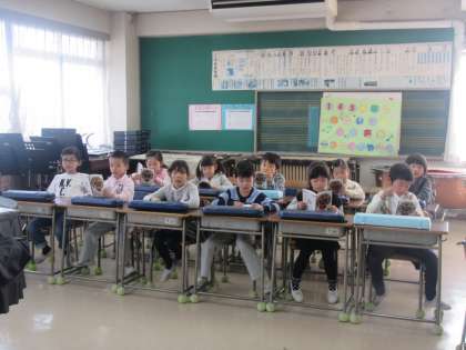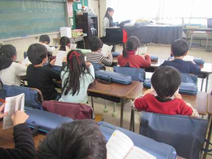 1年生が音楽の時間に「上を向いて歩こう」を歌いました。