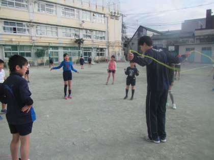 4年生は早速なわとびをしたり、サッカーをしたりしながら過ごしました。