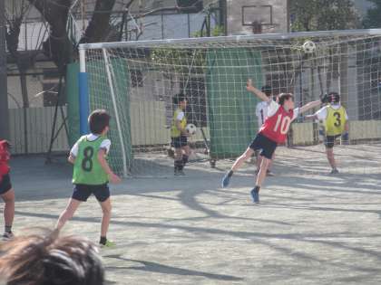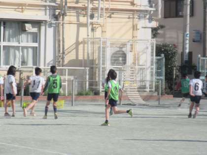4年生は体育の時間にサッカー型ゲームをしてます。